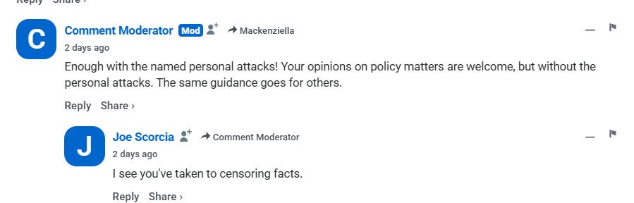I was jesting when I told Scorcia that the reason his post was censored was that he referred to me by my first name, qualifiable as a personal insult by the moderators’ standards. The real reason is that Scorcias post can be viewed as supporting the argument that ICE’s actions are unconstitutional. The moderator does not care one iota if anyone insults me, in any manner that he spins an insult. The Disqus moderator is biased on the wrong side of history.