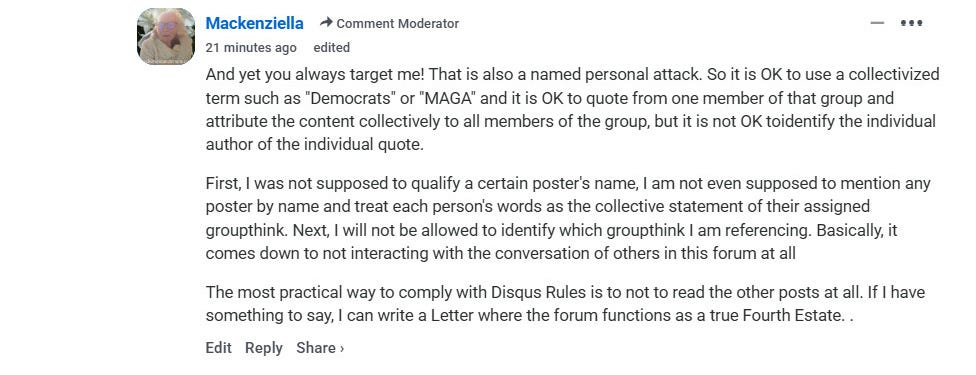 MAGA Moderator employed by Disqus asserts policies that are inconsistent with the local publisher